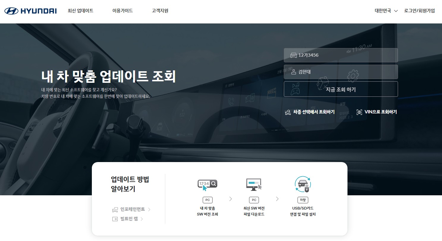 - 현대자동차 내비게이션 업그레이드 공식 사이트로 이동합니다.